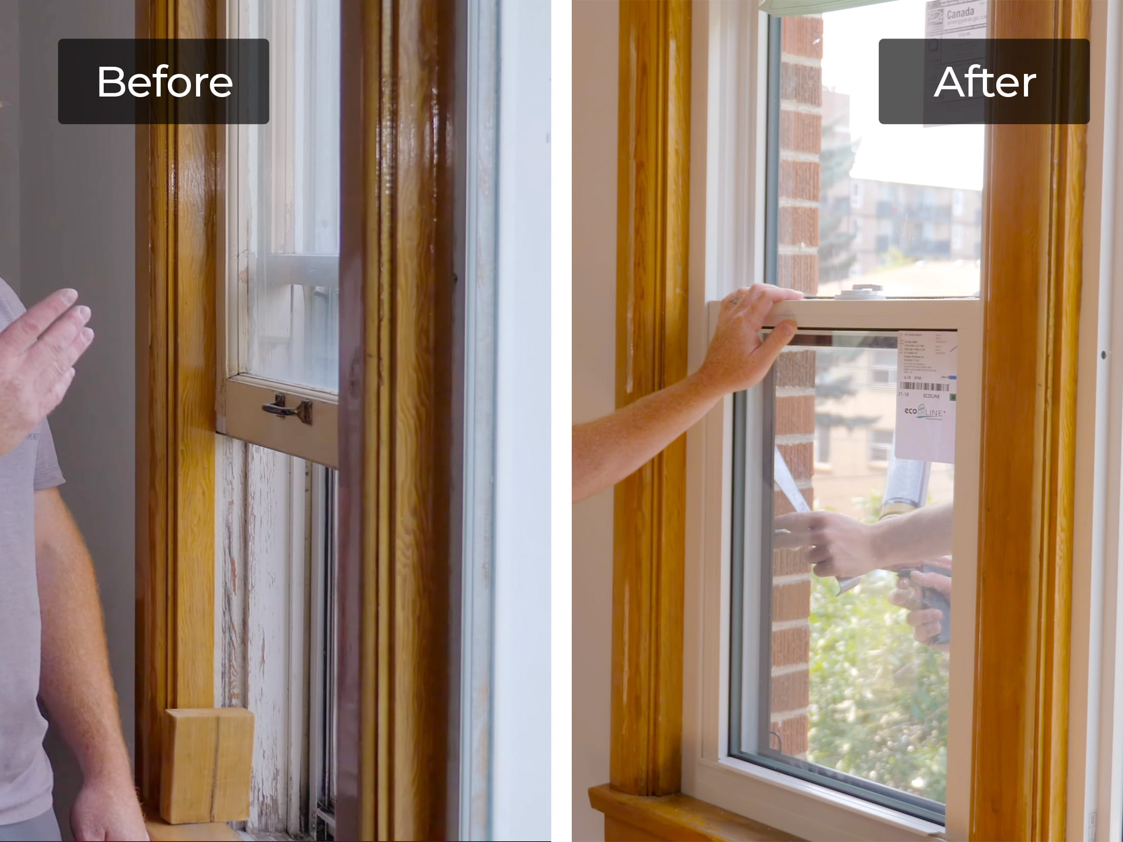 “And I’ll take that even one step further. We have to spend a lot of time with the city as a heritage resource for exactly what the window can look like. Like double hung, we can’t change nature of it, exact moulding on the inside has to stay intact, even the centrepiece!”, says Cathy Butler, one of the co-owners of the heritage building at one of the window replacement projects Ecoline recently completed.