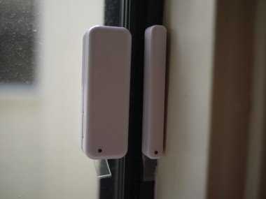 Door and window sensors come in two pieces. One fits onto the door or window itself, while the other part attaches to the frame. Adhesive usually keeps the sensors in place, though some sensors can also be screwed directly into the frame. The two pieces of the sensor interact when they are next to each other. When they are separated, such as when the door or window is opened, they send a signal to the alarm panel.